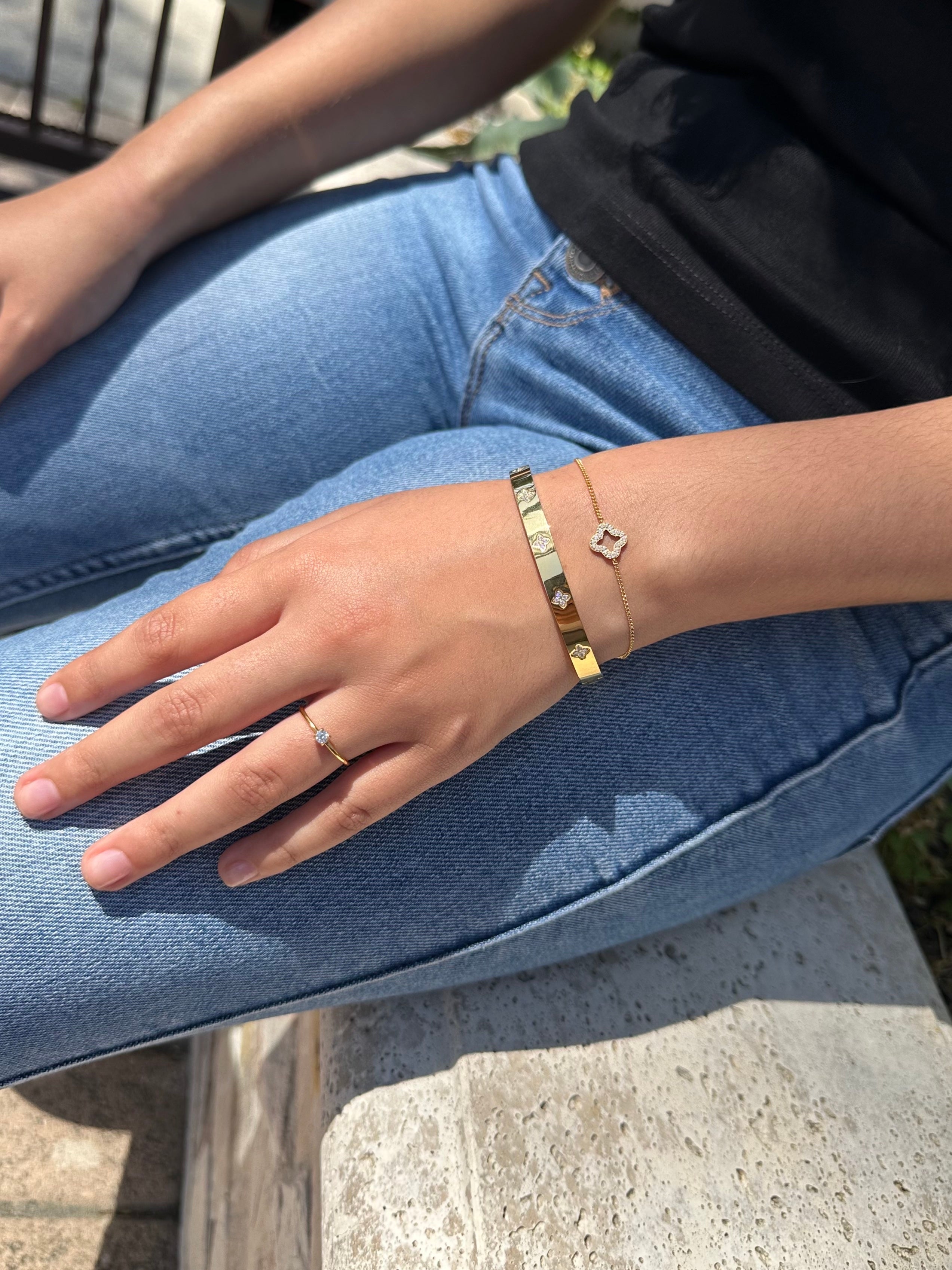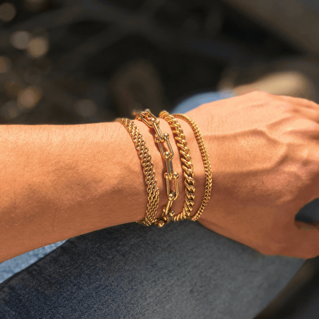 Bought this bracelet to match a few other gold style bracelets and OMG! This is honestly the cutest bracelet ever, not only does it fit my wrist (I asked for it to be a little smaller than 5.5) I don't have to worry ab taking it off and putting it back on because it doesn't rust. I recommend this bracelet 100%!!